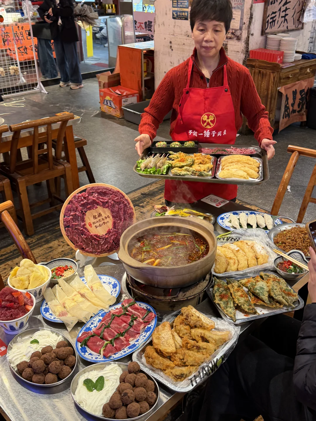 深圳,六个人去吃火锅,拿了八十盘牛肉,二十盘榴莲,结果吃不完,被扣300元押