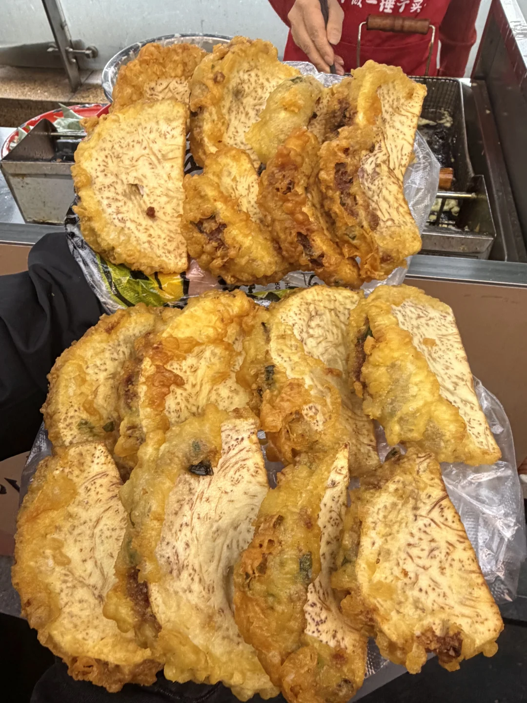 芋头夹、假萎叶饼、每一个都好好啊啊啊!直接被圈粉了!!全部都是阿姨手工现做现炸的!!!还有炸香蕉!!我真的巨爱!!!