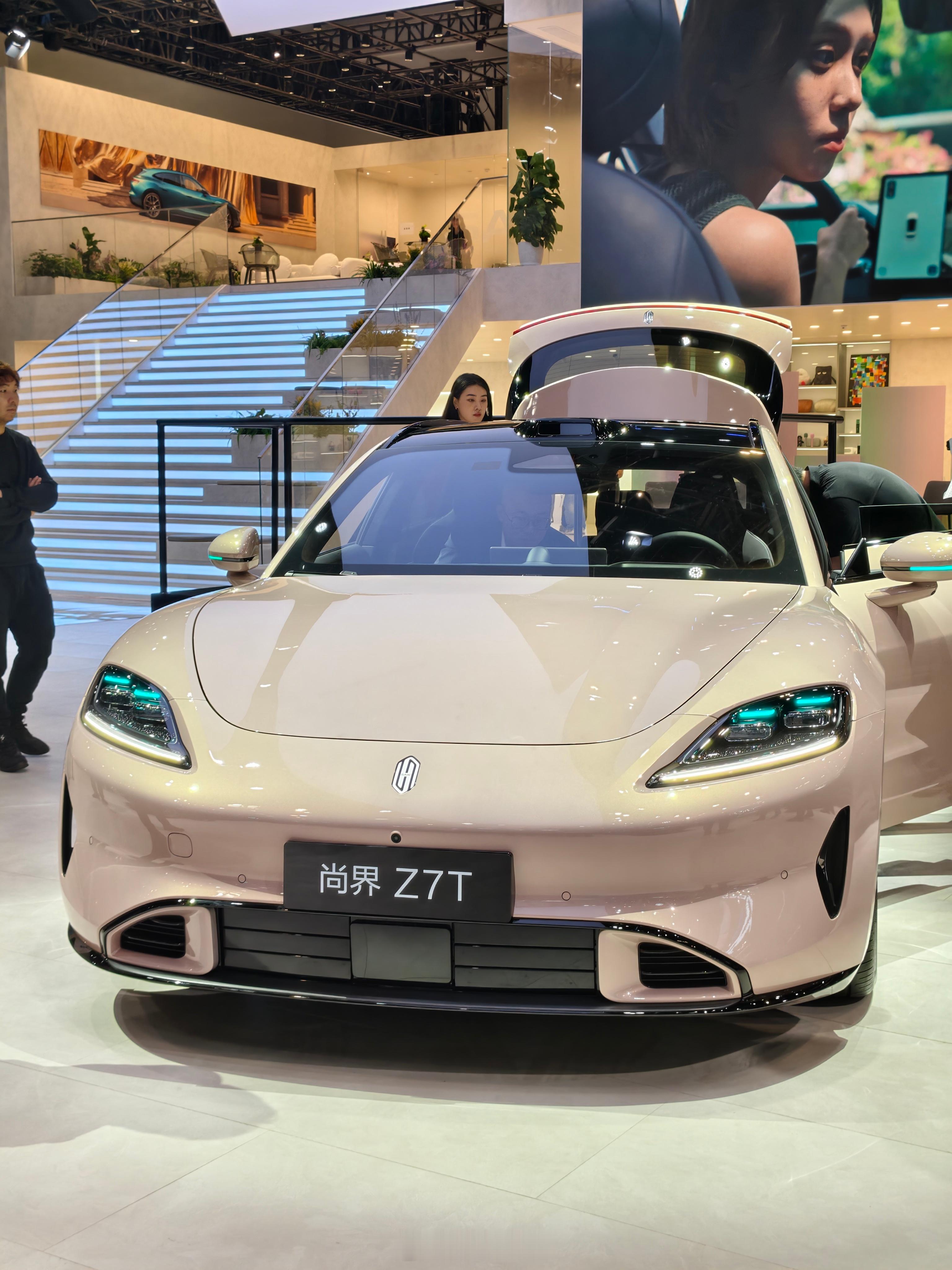 前两天发布会围着太多人了,今天顺手拍两张。现场灯光下颜色质感比照片舒服,琥珀金绿和电光紫粉都比较正。旁边那台掀背轿跑今天看也觉得比例更好,实车比官网图协调。