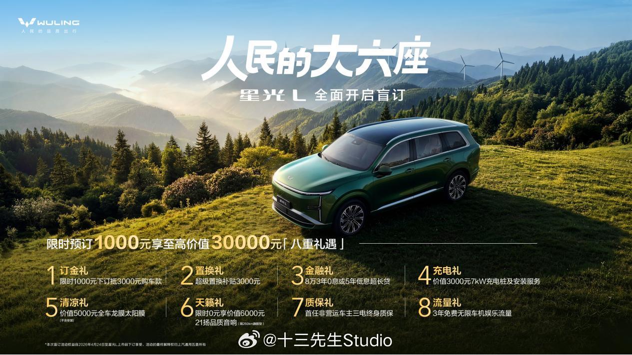 预算不够想买大六座怎么办?你得找五菱啊!人民大六座星光L北京车展上,五菱星光L亮相了,并同步开启盲订。按照五菱的定价,我觉得星光L应该是非常极致性价比那种大六座。星光L长宽高4980×1930×1760mm,轴距2950mm,是准“532”车型了。外观很显大显高,并且即使用了贯穿式大灯这些设计,但并没有同质化,纯原创设计,还是比较值得点赞的。有5.6㎡车内有效面积与90%得房率,配备1.24m车内层高与190mm纯平过道,方便二三排进出,后备箱容积383L-1103L。三电会搭载37.9kW·h电池,CLTC纯电续航260km,综合续航1260km,馈电油耗4.9L/100km,支持3C快充,给得也会比较高。品质上,采用巴斯夫2K清漆、米其林轮胎等全球供应链,获5S健康座舱认证。星光L