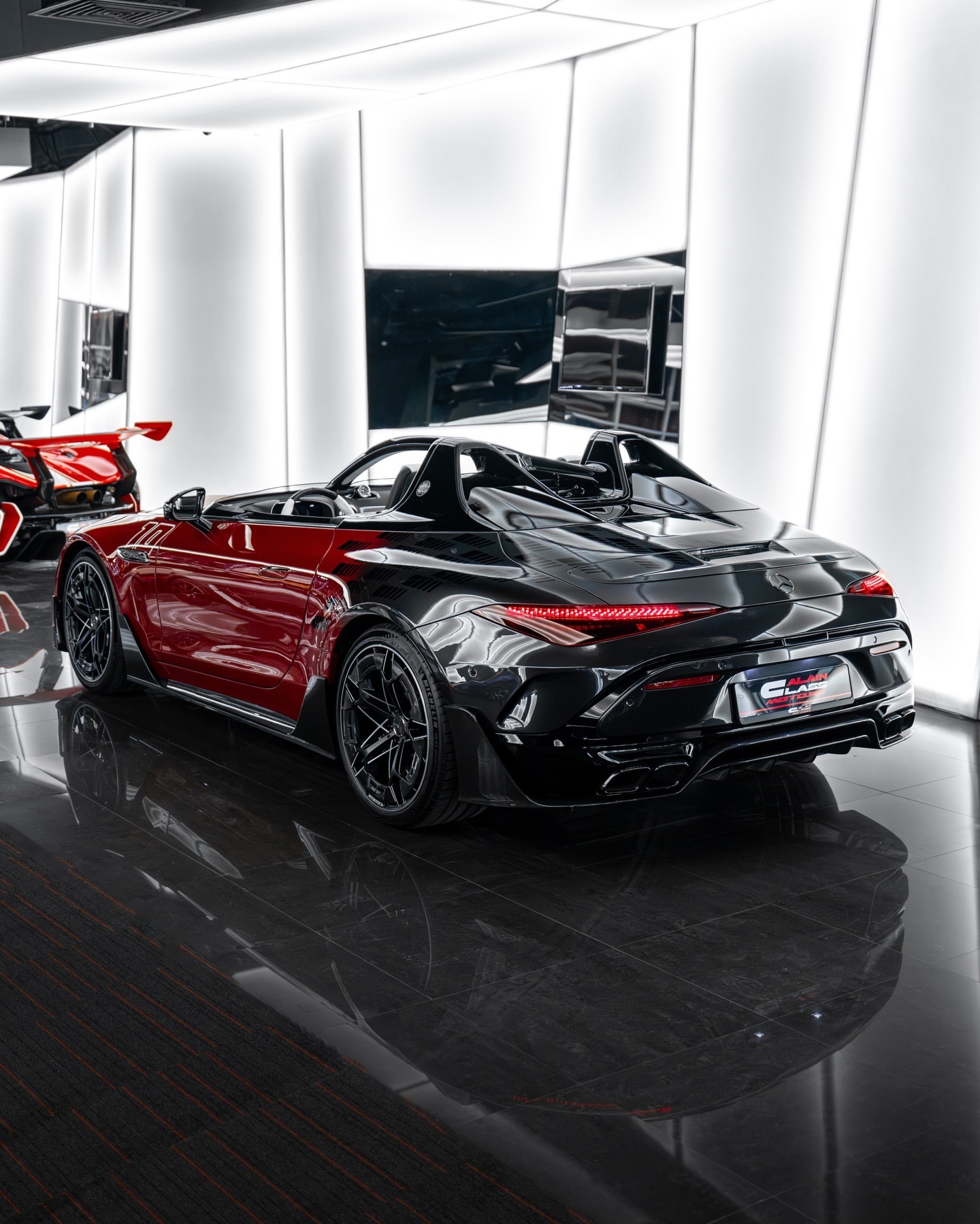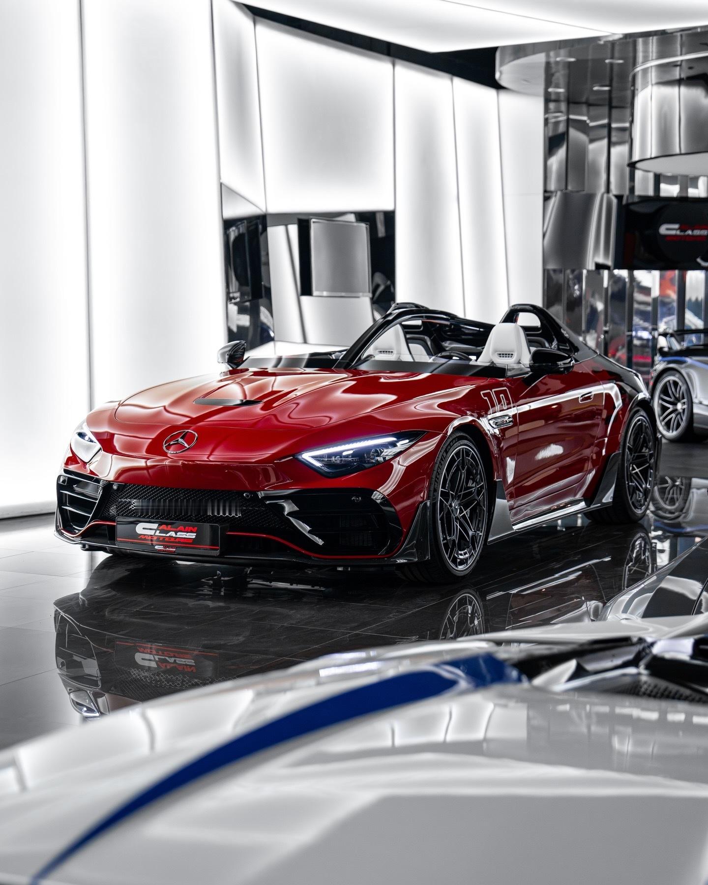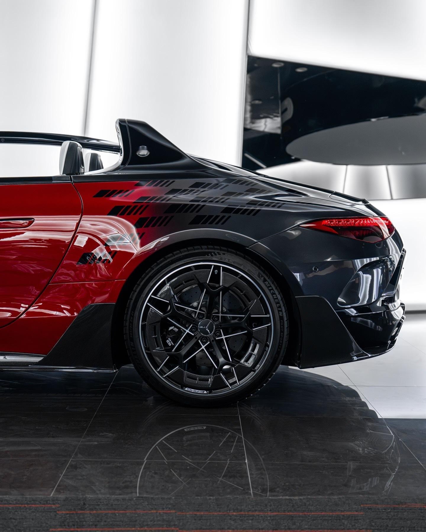 锆石红车漆搭配石墨灰内饰,还未启动已先声夺人。踏入车内,水晶白与黑色Nappa皮革映入眼帘,辅以贯穿座舱的AMG碳纤维饰板形成鲜明对比。21英寸AMG锻造PureSpeed轮毂承托车身,碳纤维与Nappa皮革包裹的AMG Performance方向盘掌控全局,这台猛兽的每一处细节都诠释着精准、气场与无可复制的AMG基因。