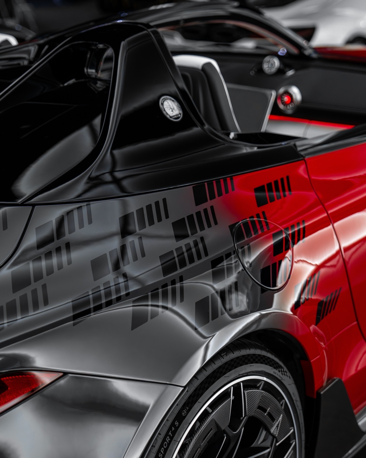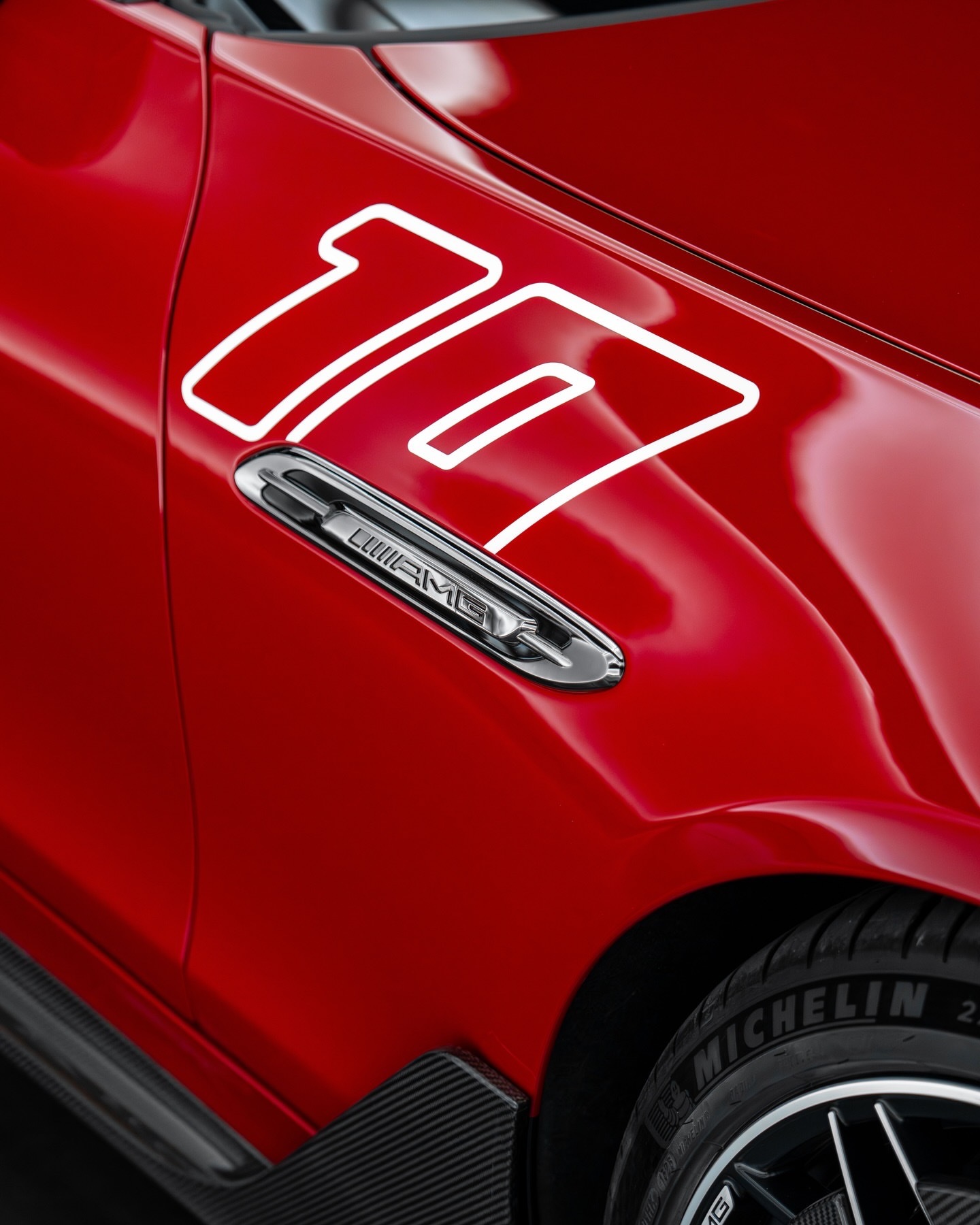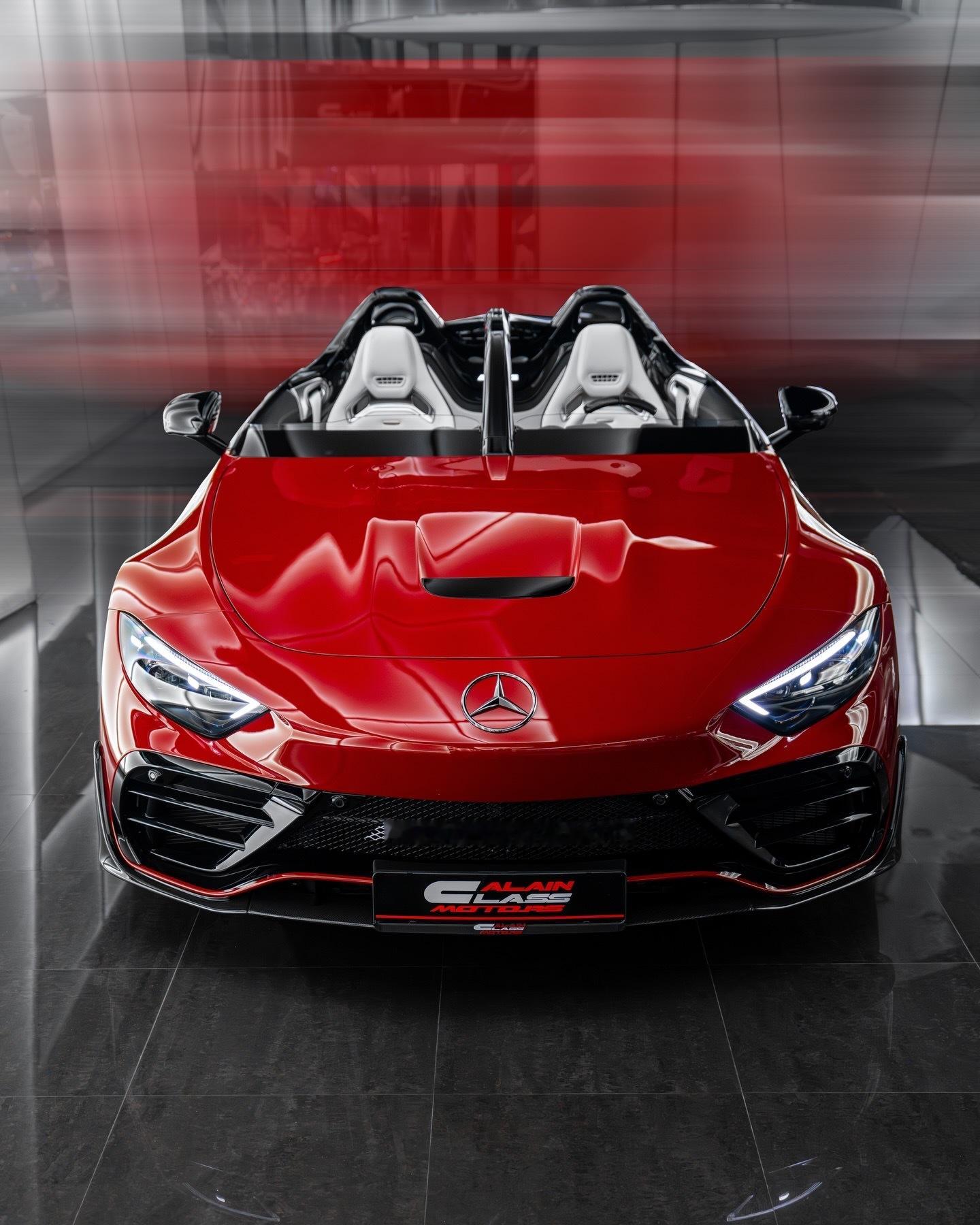 锆石红车漆搭配石墨灰内饰,还未启动已先声夺人。踏入车内,水晶白与黑色Nappa皮革映入眼帘,辅以贯穿座舱的AMG碳纤维饰板形成鲜明对比。21英寸AMG锻造PureSpeed轮毂承托车身,碳纤维与Nappa皮革包裹的AMG Performance方向盘掌控全局,这台猛兽的每一处细节都诠释着精准、气场与无可复制的AMG基因。