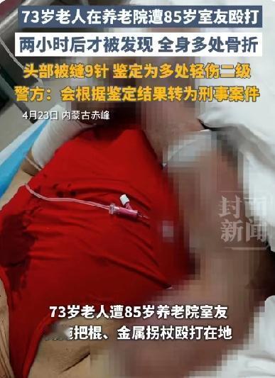 内蒙赤峰73岁老人遭85岁室友持续殴打,两处骨折头缝9针,太气愤了,在这2小时里护工去哪了?