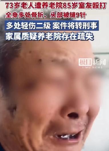最近,网上爆出了一起令人心痛的养老院暴力事件,实在是让人心里堵得慌。说的是一位73岁的大爷,在养老院里,竟然被85岁的同宿舍室友给打惨了。