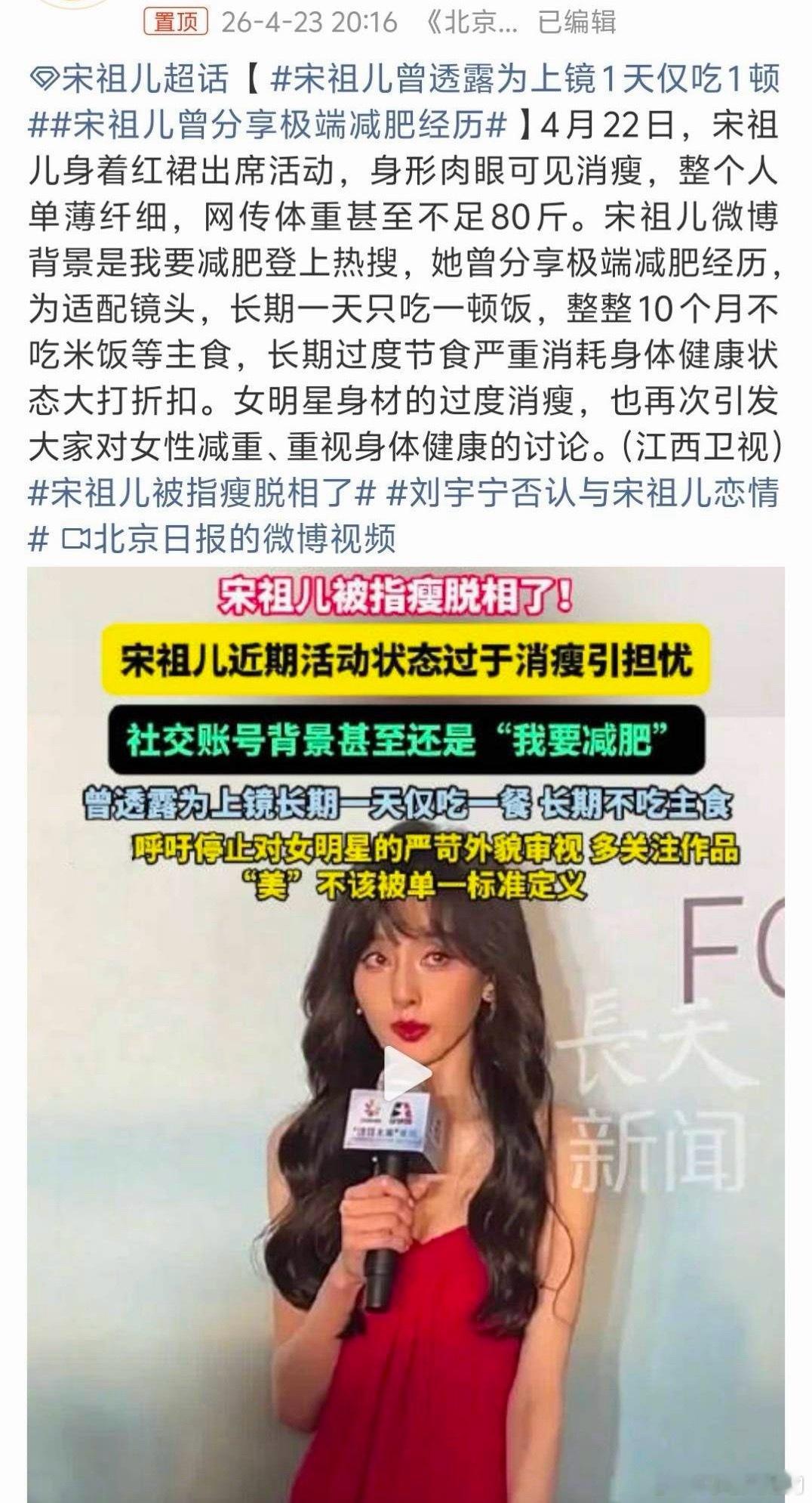宋祖儿的暴瘦来自大众对女明星外貌的严苛审判?正常人没谁会觉得骷髅架子好看吧……再说娱乐圈那么多线上小花,瘦成宋祖儿这样的独此一份。