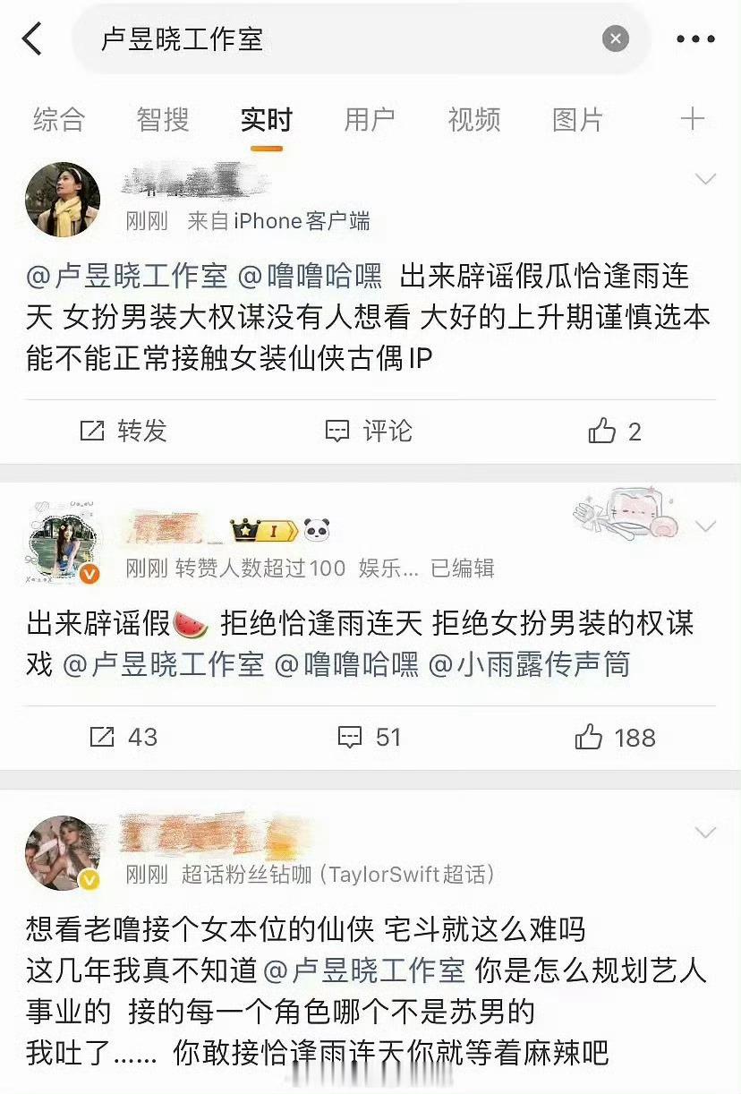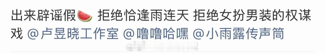 《恰逢雨连天》男主定的是丁禹兮女主在传卢昱晓了。古偶权谋+女主全程男装+被男主压一头+结局输给男主……还以为恰逢雨连天是好饼,结果卢昱晓粉丝在要求对接出来辟谣。拒🫓是因为这是一部女扮男装的权谋戏,看这简介还是以女主为视角的女本位戏。Buff叠满了!难怪卢昱晓粉丝永拒,女频大男主谁爱看?