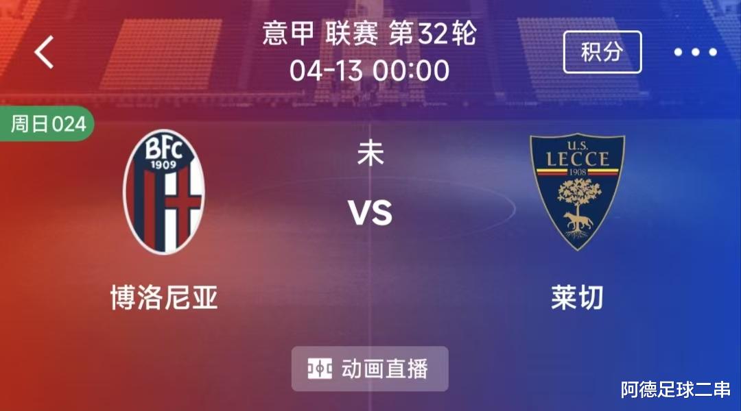 024意甲:博洛尼亚 VS 莱切时间:2026-04-13 00:00