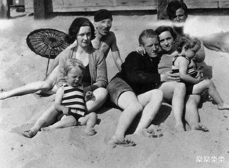 格拉迪斯·珀尔·贝克和闺蜜带着孩子在沙滩玩耍