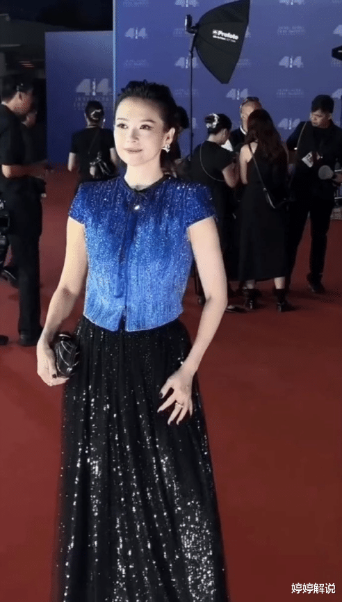 章子怡的身段向来是出了名的苗条,但这次她特意选了收腰的设计,把腰线勒得清清楚楚。再加上裙摆的蓬松感,整个人的比例被拉得又高又瘦,站在那里就是一幅画。