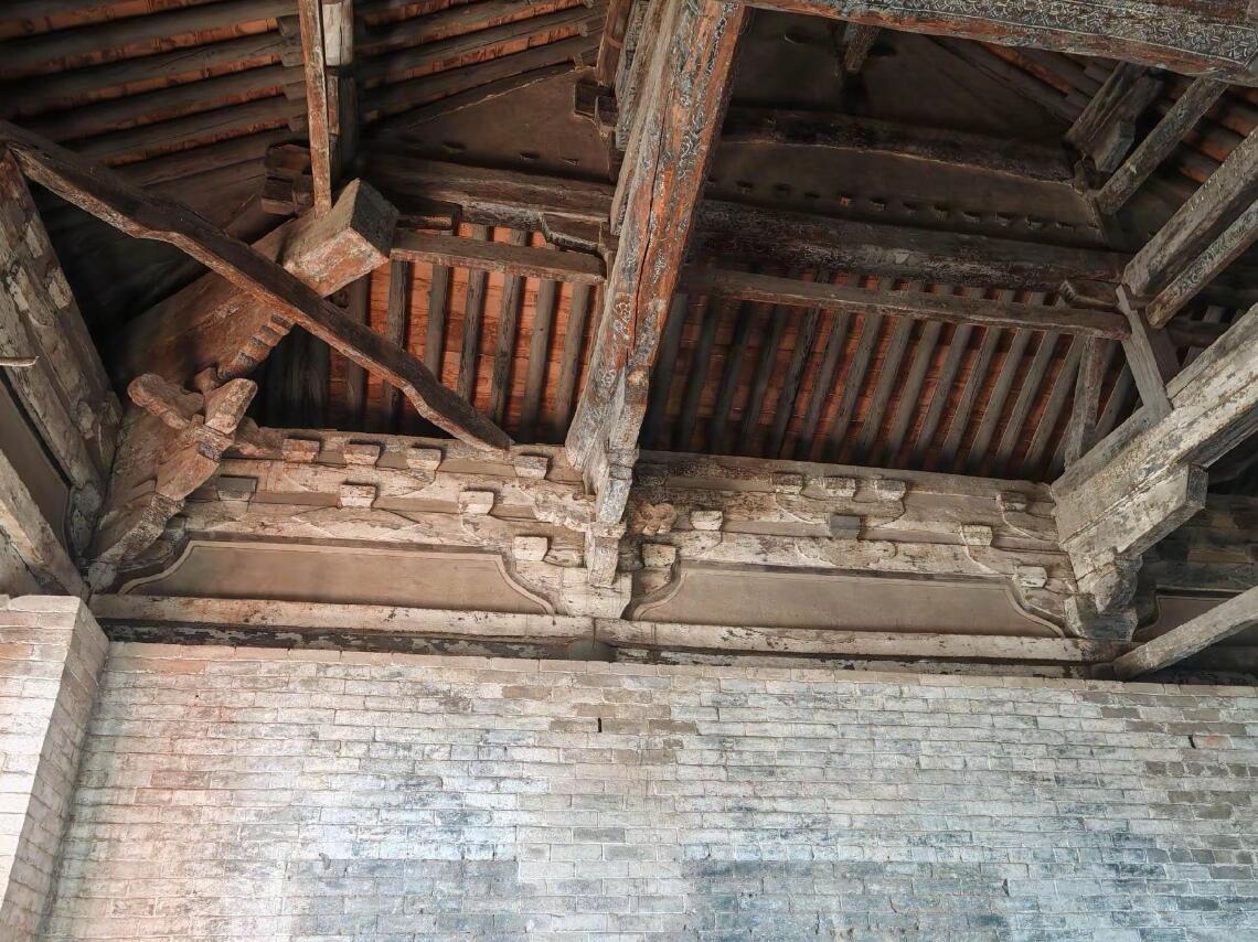 与前殿相隔不远的中殿,同样是北宋原构,却在风格上与前殿有着微妙的差异。如果说前殿的斗栱工艺偏向精巧繁复,那么中殿的梁架结构则更显规整大气。走进殿内,抬头便能看到裸露的梁架,没有过多的装饰,却通过木材的天然纹理和结构的对称之美,营造出一种古朴庄重的氛围。梁木粗壮挺拔,横跨整个大殿,两端与立柱紧密相连,形成了稳定的框架结构。这种“露明造”的营造方式,不仅展现了宋代建筑“减柱造”“移柱造”的创新理念,更让人们能够直观地感受到古建筑的结构之美。站在殿内,闭上眼睛,仿佛能感受到千年前工匠们挥汗如雨的劳作场景,他们用斧头、锯子、刨子等简单的工具,将一根根原木打造成精美的建筑构件,用智慧和汗水搭建起这座跨越千年的建筑奇迹。