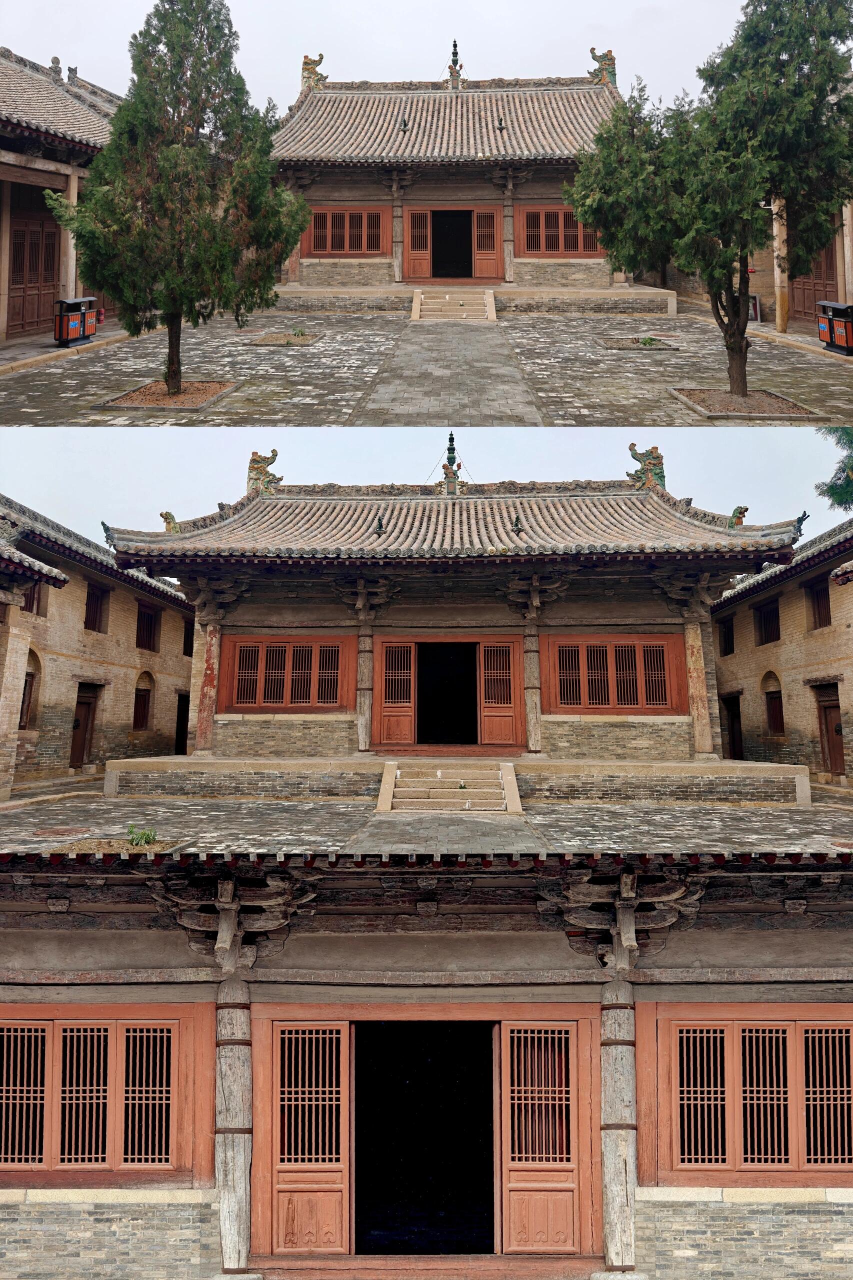 穿过中殿,便来到了后殿。如果说前殿和中殿是宋代建筑的巅峰之作,那么后殿则展现了明代建筑的独特韵味。作为明代修缮时所建,后殿在保留古寺整体风格的基础上,融入了明代建筑的审美特点:屋顶的坡度比宋构更为陡峭,飞檐的弧度也更加夸张,显得气势恢宏;殿内的装饰也比宋构更为繁复,门窗上的雕花工艺精美,图案寓意吉祥,展现了明代手工业的高超水平。有趣的是,后殿虽然是明代建筑,却与前殿、中殿形成了奇妙的呼应——宋构的古朴典雅与明构的庄重华丽相互映衬,既有传承又有创新,构成了一幅跨越数百年的建筑画卷。这种不同朝代建筑在同一院落中和谐共存的景象,不禁让人思考:在漫长的历史进程中,古人是如何在修缮古寺时,既尊重原有建筑的风格,又融入当下的时代特色的?这种“修旧如旧”与“与时俱进”的平衡,正是中国古建筑传承与发展的核心密码。