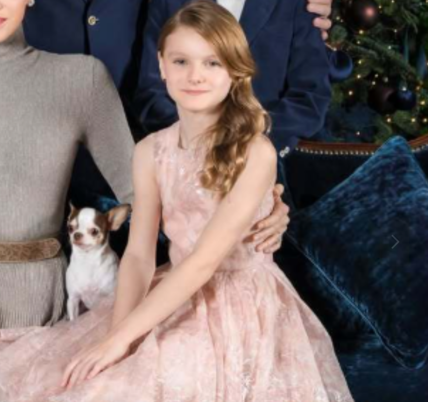 如果没有猜错的话,龙凤胎公主与王子的庆生照是和圣诞贺卡照一起拍的,因为他们的发型一样,也就所穿的衣服不一样而已。