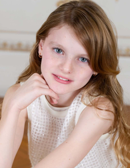 单独看龙凤胎小公主,选择一件无袖小白裙,单手托着下巴,面对镜头唇红齿白还笑容甜美,这样的小公主褪去稚嫩变轻熟。