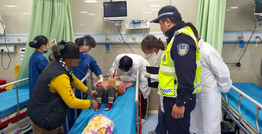 2025年12月2日10时30分许,城市二大队七中队民警接指挥中心派警,有一儿童摔伤导致颅内出血及多处骨折,需要紧急送往遵医学院附属医院就医,请求交警开道护送。