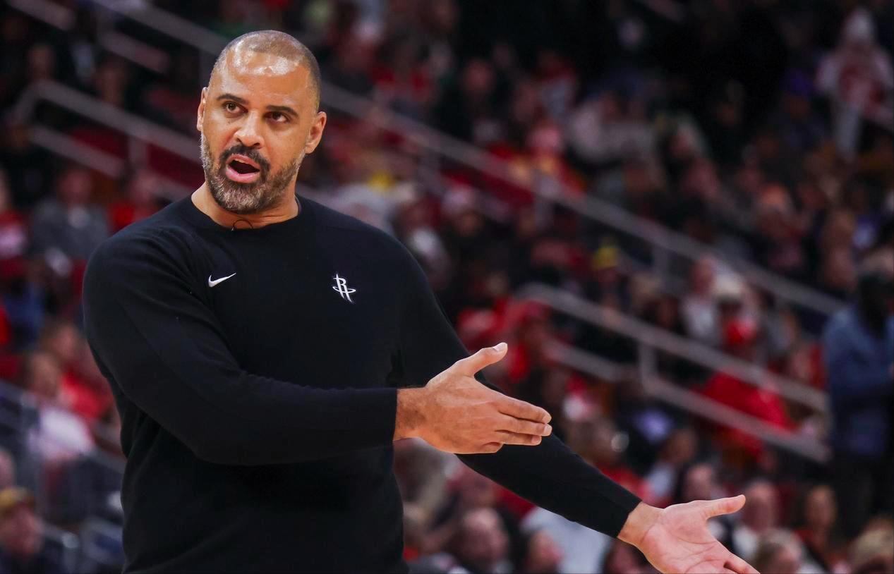 除了进攻端的多线开花,火箭触底反弹的另一个重要原因就是防守。此役,乌度卡又搞了一个科研,尽管申京因伤缺席,他通过把伊森提上首发,还是整出了一个最低海拔都达到2米01(阿门-汤普森)的“死亡五大”阵容。这套“天罡长人阵”不但帮助他们抢到了许多进攻篮板,还在防守端极具压迫性。