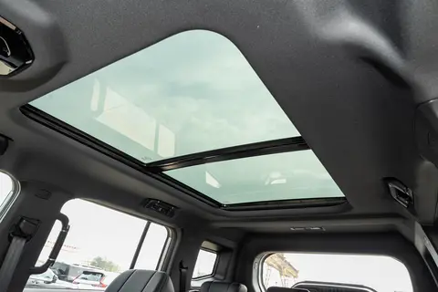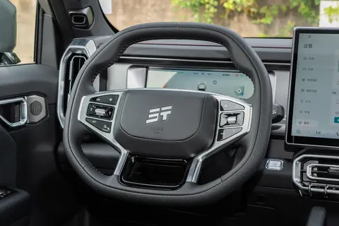 内饰设计在硬派风格基础上加入了精致元素。64英寸分段式可开的全景天窗,打开时采光好,城市路上看风景棒,露营时还能仰望星空,氛围相当不错。方向盘硬派设计,皮质包裹,摸着手感舒服,钻石纹理实体按键样子好看且支持盲操,驾驶时不用低头找按钮,减少分心,提高手安全。座椅用仿皮包覆,菱形双排缝线,看着高档,坐着舒服。前排座椅三档通风加加热,带电动四向腰托调节,主驾驶还配备8点立体按摩,副驾设有一键“女王座”模式。长途开车时按摩功能很给力,通风夏天凉快,烤火功能冬天暖和,提升乘坐舒适。车内有9处软包覆拉手,颠簸或者轻度越野时乘客抓稳用,安全感提升。氛围灯用G318路线饰板设计,多色可调,营造越野氛围,晚上座舱气氛好;麂皮材质的运用让内饰质感提升不少,摸着舒服。