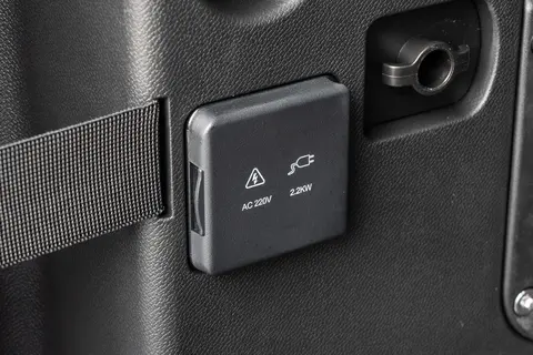 另外,它还配备2.2kW+6.6kW内外放电功能,特别适合户外露营。你可以用车载接口来接电烤炉、咖啡机、电煮锅、投影仪这些设备,完全不用带笨重发电机。在一次露营时,我用这功能煮了两小时火锅烤串,电量消耗很低,对后续驾驶几乎没有影响。夏天露营还能开24小时驻车空调,不用发动机运转,车内保持安静又凉爽,舒适度大大提升,也避免发动机额外损耗。