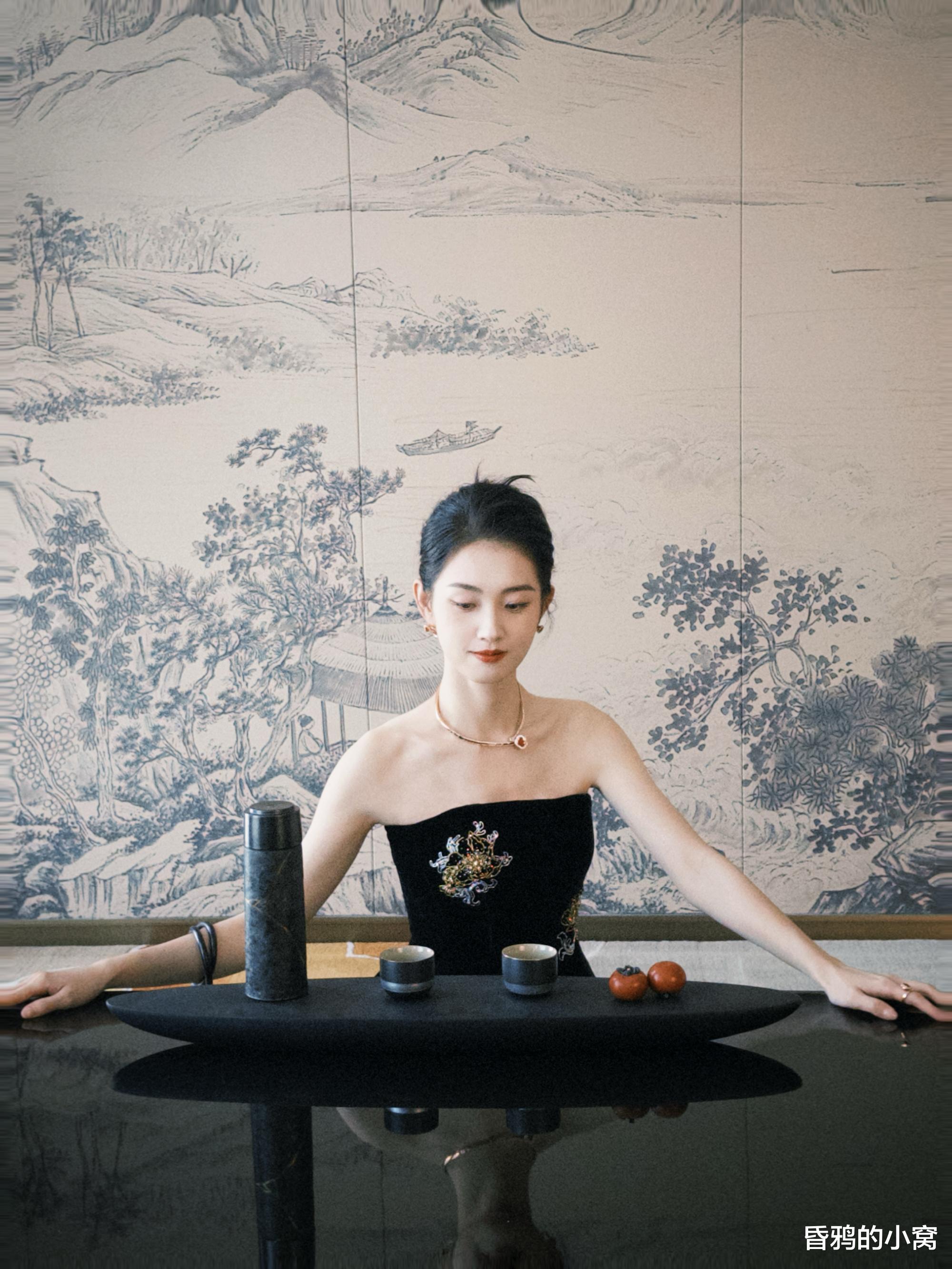 她三次公开亮相均穿着同一条黑色闪钻长裙——从2023年个人视频拍摄,到2024年剧集开机仪式,再到2025年横店微短剧之夜红毯,这条由入行初期老师量身定制、蕴含中国风元素的裙子,成为她“拒绝浪费、专注作品”的具象符号。