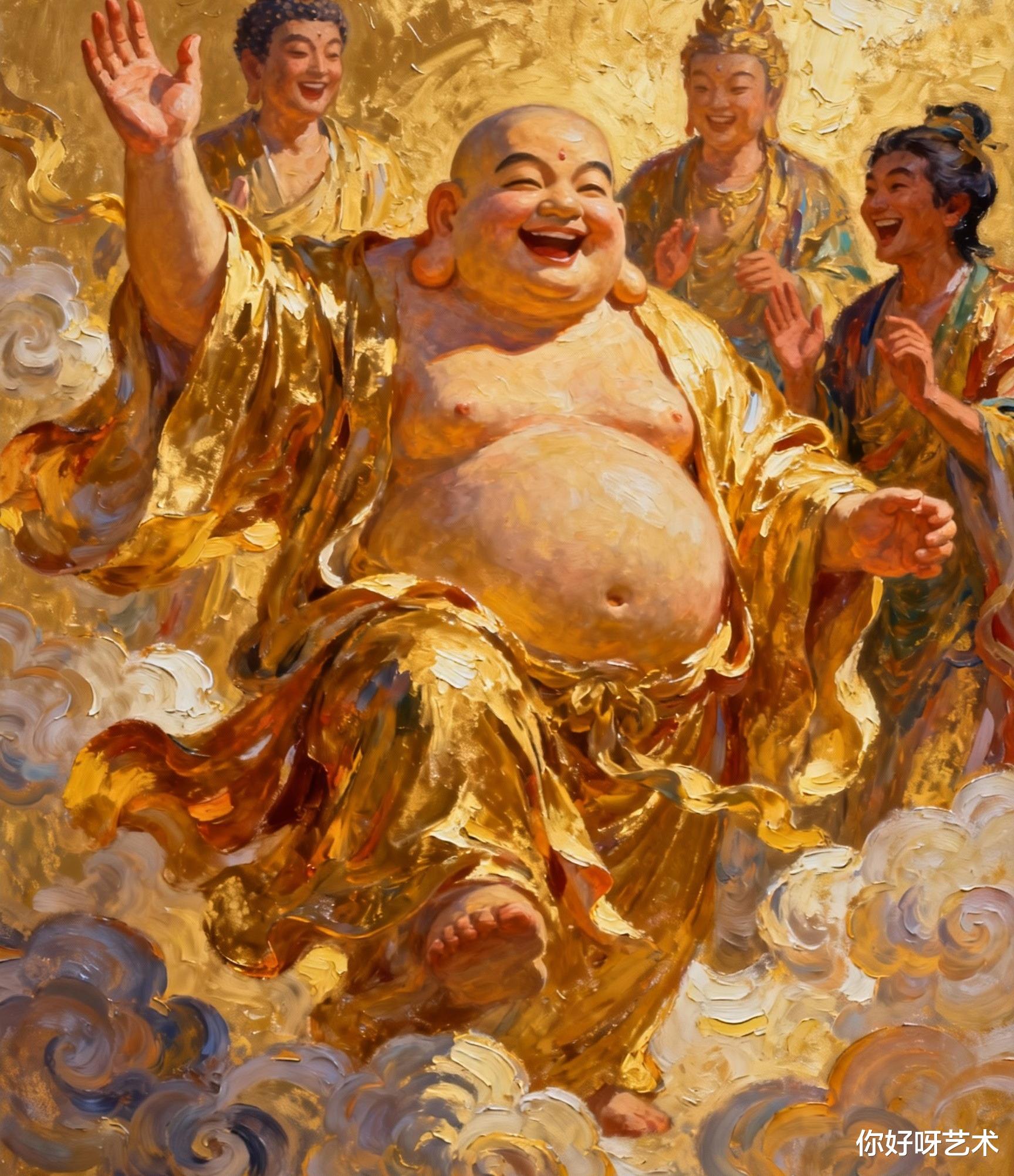 在那幅描绘弥勒佛的油画前,仿佛开启了一扇通往宁静与祥和的精神之门。