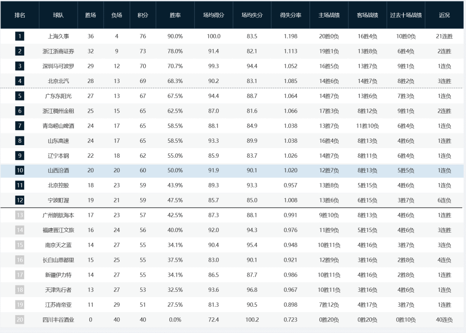 北京时间4月19日晚,2025/26赛季CBA常规赛,第41轮先战4场。本轮浙江广厦加时战胜北控队,北汽男篮客场战胜青岛,山东男篮终结深圳15连胜,新疆男篮主场大胜南京。