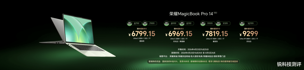二、旗舰轻薄本新标杆:荣耀MagicBook Pro系列2026