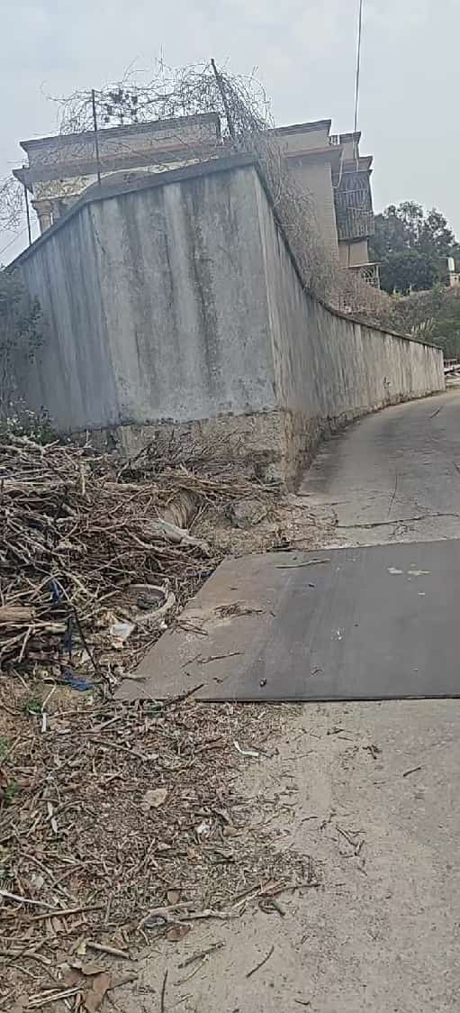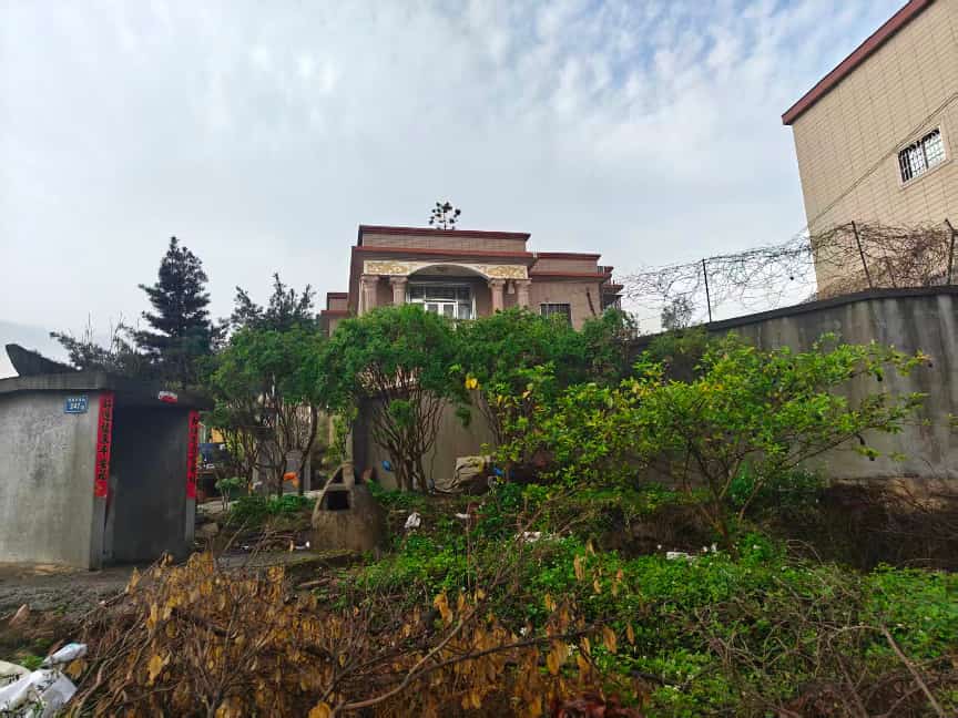 令人心惊的是,高墙顶部被加装了危险的刀片铁丝网。由于长年累月的风吹日晒,铁丝网已经生锈,随时有脱落的风险。更危险的是,这处高墙恰好位于村里的道路路口,严重遮挡视线,对过往村民的出行安全构成了切实的威胁。