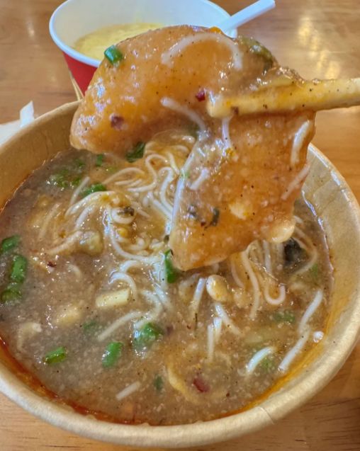 我在孝感一个巷口找到一对老夫妻的摊子,摆了二十多年。老太熬糊汤,老头管米酒。糊汤米粉端上来白乎乎的一碗,看着寡淡,但喝一口鲜得很,米香浓郁。老头在旁边催:“就一口米酒,别多喝,多了醉。”我按他说的,先喝半碗糊汤粉,再抿一口米酒,甜味把糊汤的米香勾得更浓,两种味道在你嘴里打架又和解,奇妙极了。老太笑着说,孝感人从小就这么吃,离了这个搭配,总觉得缺了点啥。