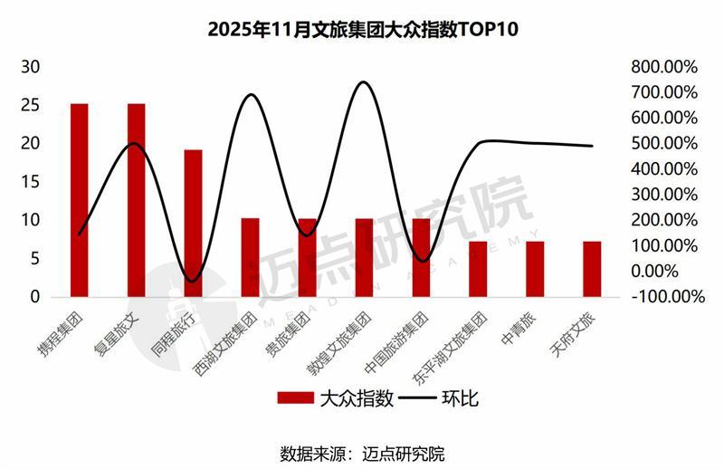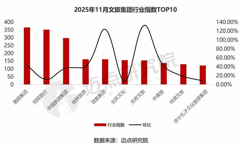 东平湖文旅集团、中青旅、天府文旅。其中,敦煌文旅集团11月大众指数10.26,环比增长高达740.98%。本月,集团新打造的“敦煌规局”现代廉洁美学艺术空间项目正式开业、