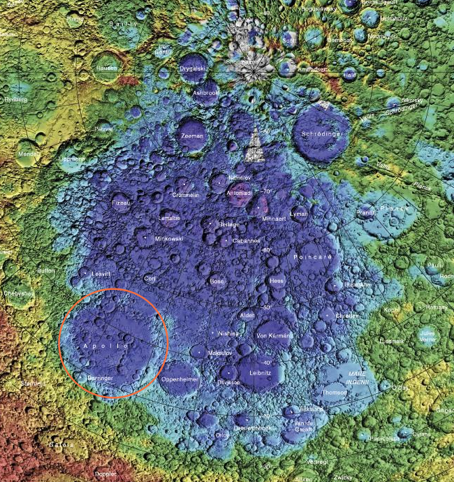(艾特肯盆地里的阿波罗撞击坑,图源:USGS美国地质调查局)