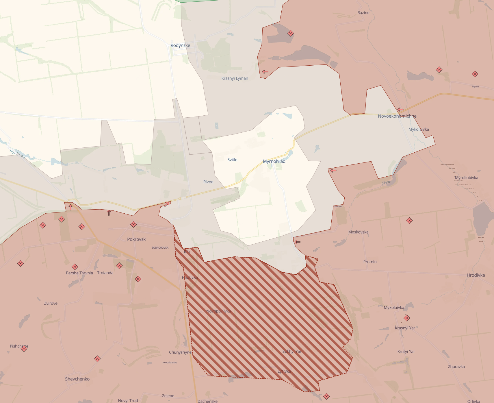 目前俄军控制了波城约60%的地区,主要集中在该市东南部地区。国防军乌克兰依然控制部分波克罗夫斯克市中心、火车站及铁路北部的大部分区域。