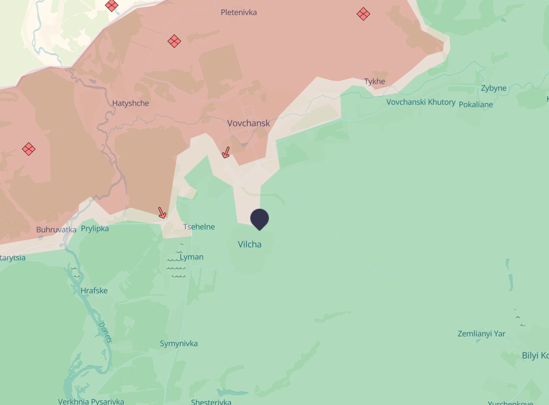 沃夫昌斯克方向,有地理定位显示,俄军进入了Vilcha镇(战前人口1.6k)北部。这可能意味着沃夫昌斯克绝大部分都已经变灰(俄军没有完全控制该镇,这一点可以肯定)。