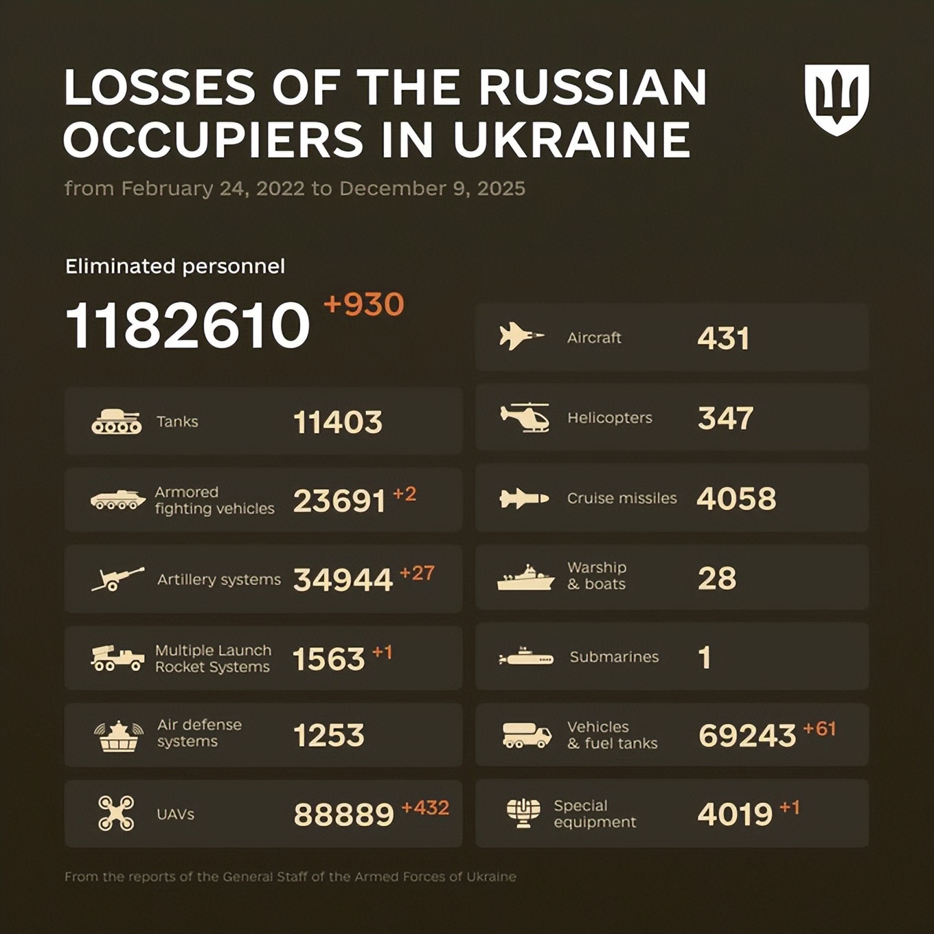 乌总参公布的昨日战果,歼敌(毙+伤)930人。