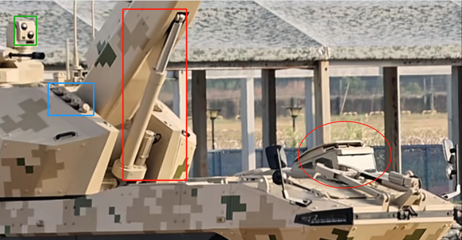 绿框则是自动武器站的光电观瞄设施,我们放大来从正面视角好好看一下: