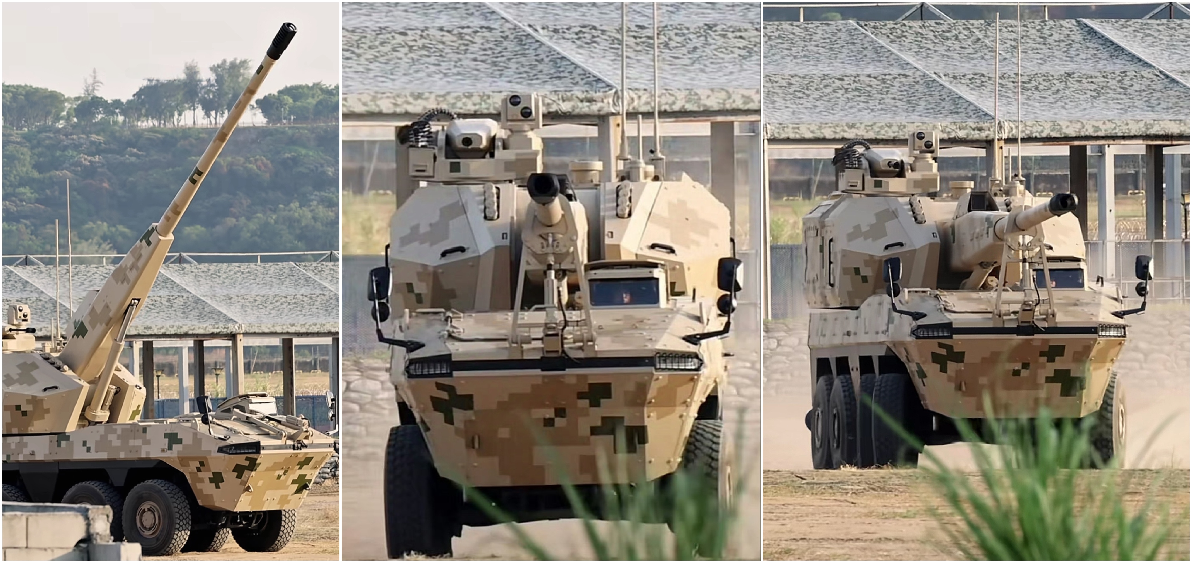 再比如2022年珠海航展上展出的、搭载52倍径155毫米加榴炮的PLL155型轮式自行加榴炮。