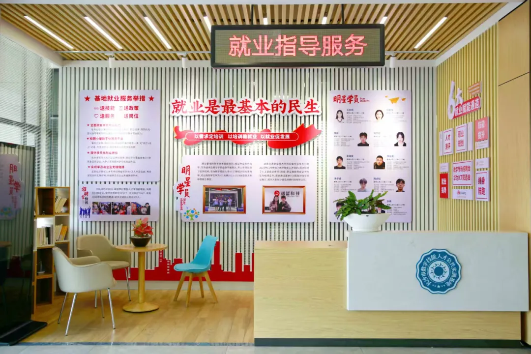 首先,打造“政校企协同”育人体系,夯实培养根基。基地一方面通过补贴性培训实现“零成本学技能”,人社部门将人工智能训练师、信息通信网络运行管理员等职业纳入补贴范围,学员无需承担费用;另一方面创新“送教上门”模式,帮助学生在毕业前获取职业技能等级证书,增强就业竞争力。
