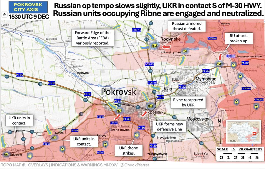 波克罗夫斯克方向,乌克兰武装部队继续在市内进行清理和行动。尽管俄罗斯声称已完全控制了该地区,但战斗显然仍在继续,有无人机参与,有近身搏斗,双方均损失惨重。