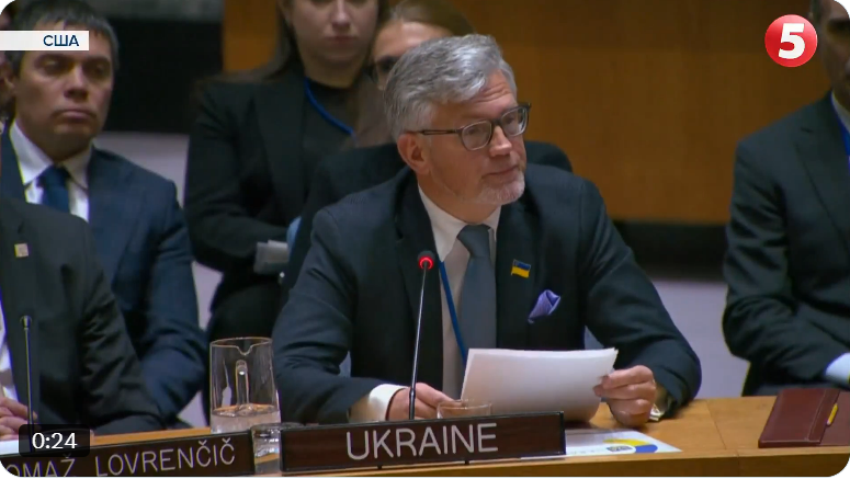 乌克兰驻联合国常驻代表安德烈·梅尔尼克在安理会会议上警告俄罗斯人说,你们只能得到一个圈圈洞(脑门弹孔),而不是乌克兰——
