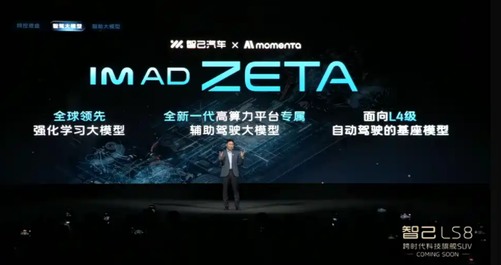 第二层是IM AD ZETA智驾大模型,由智己与Momenta联合研发,基于Thor高算力平台打造,直接面向L4级自动驾驶。相比上一代系统,参数量提升3—4倍,性能上限提升约20倍,可通过云端世界模型持续学习,实现先预判、再行动的类人驾驶逻辑。