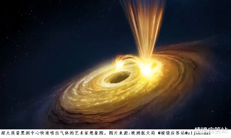 简单来说呢,黑洞周遭那些纷繁的磁力线忽然断裂,接着又迅速接合,刹那间释放出庞大能量,似弹弓一样把物质弹射出去
