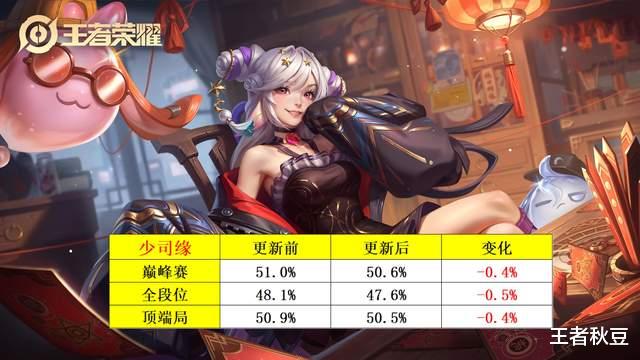 受此影响,少司缘三榜胜率出现小幅下滑,三榜下滑0.4~0.5%,看起来并不明显。少司缘主要的功能是窃取金币限制敌方发育和灵活的身手打出控制骚扰。单纯减少数值影响并不算大。