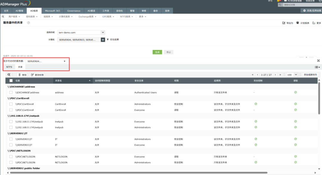 通过详细的权限分析与访问控制报表,ADManager Plus 可清晰展示用户或组的访问权限、继承关系和共享权限,帮助企业满足审计法规(如 GDPR、SOX、ISO 27001)要求。