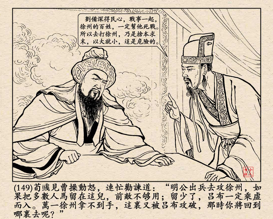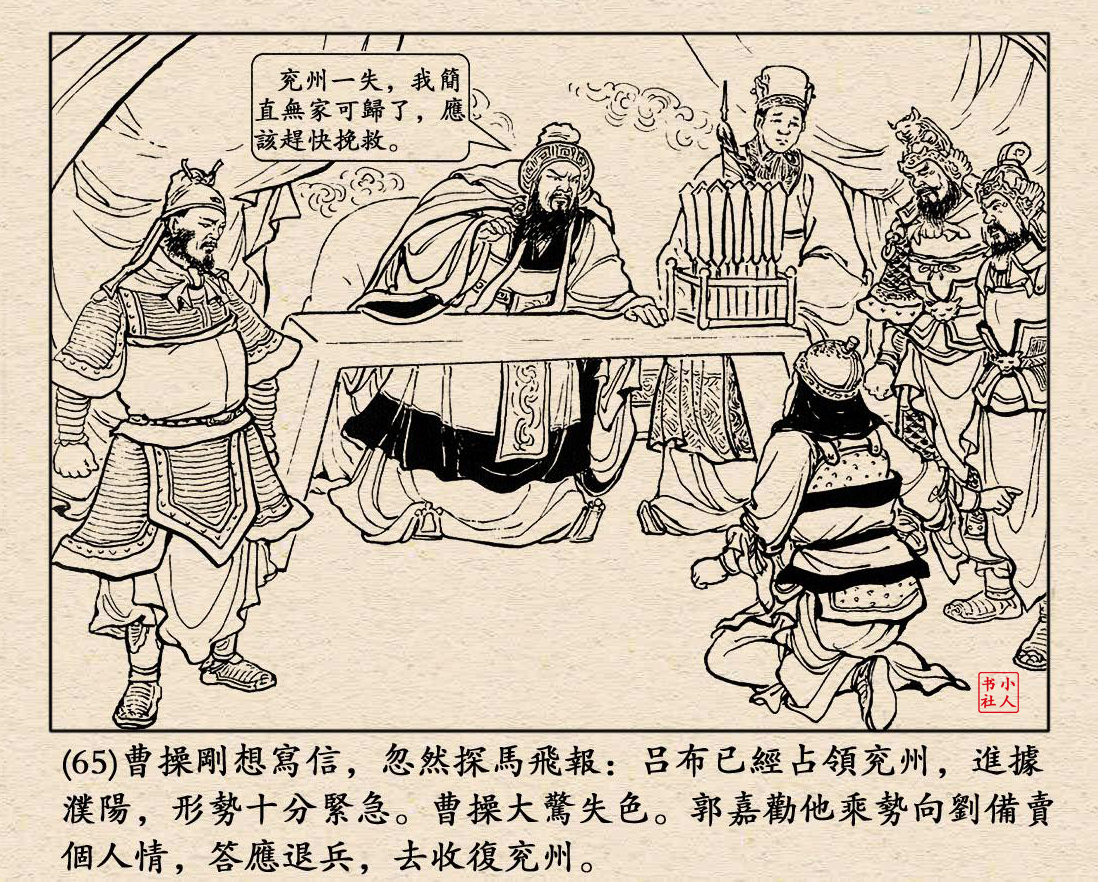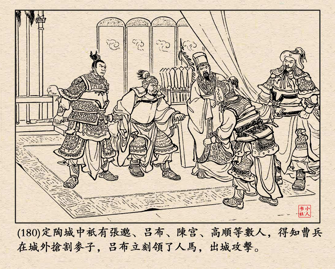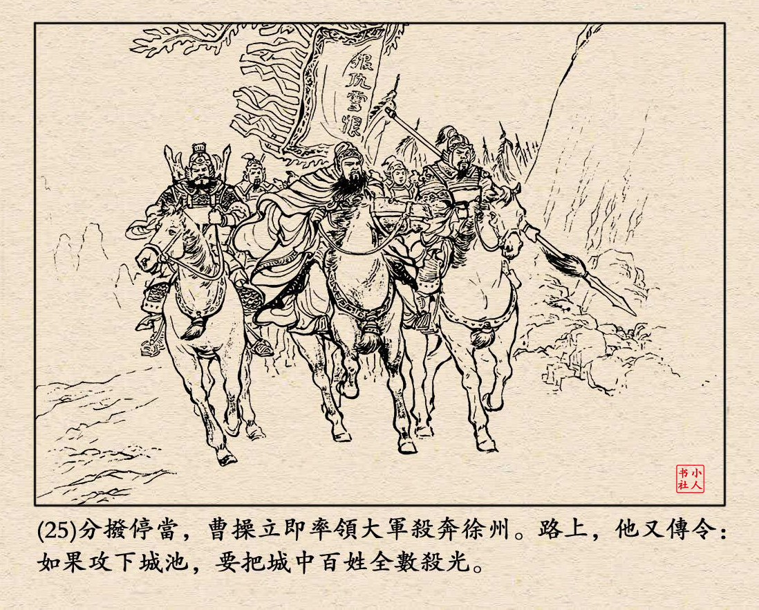 《三让徐州》连环画是由良士改编,汪玉山绘画。故事讲述曹操进攻徐州太守陶谦,刘备救徐州,代陶谦求情。曹操因吕布袭了兖州、汉阳,乘机回兵战吕布,被吕布火攻所破。附近谦年老,三次要让刘备管领徐州,刘备不受,直到陶谦病故,才遵遗言权为徐州太守。