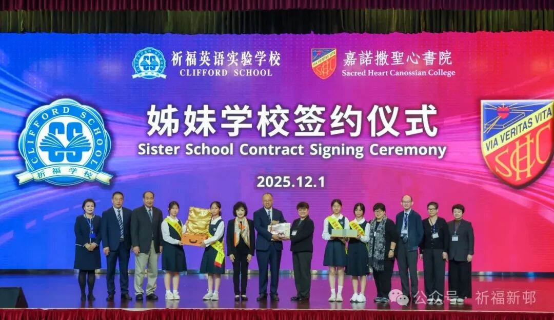 12月1日,祈福英语实验学校与香港嘉诺撒圣心书院校际交流暨姊妹学校签约仪式在祈福英语实验学校隆重举行。全国政协委员、祈福集团副董事长孟丽红女士、香港嘉诺撒圣心书院一行80余名嘉宾、数百名祈福英语实验学校领导、师生齐聚一堂,这场以教育为纽带的相聚,既有守望相助的温情共鸣,更有共筑湾区教育未来的坚定承诺,共同绘制粤港教育共融的崭新蓝图!