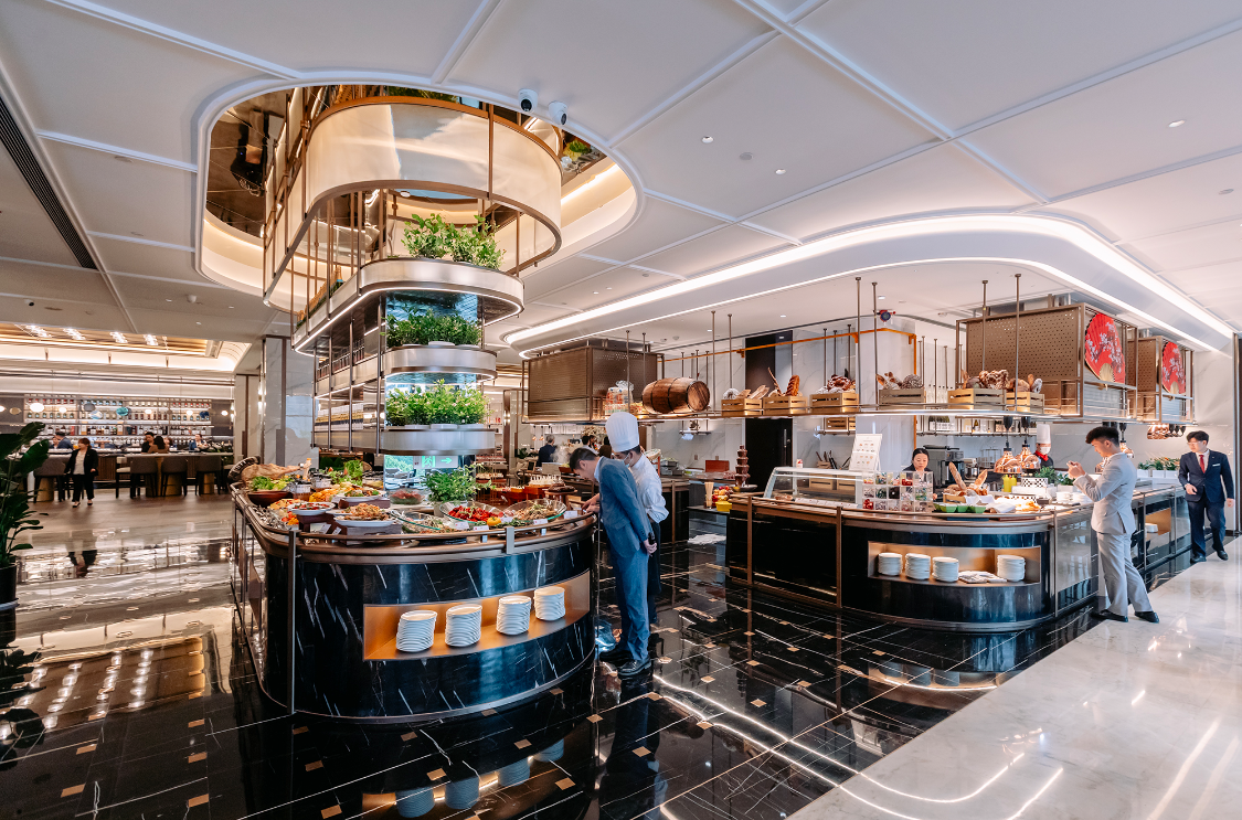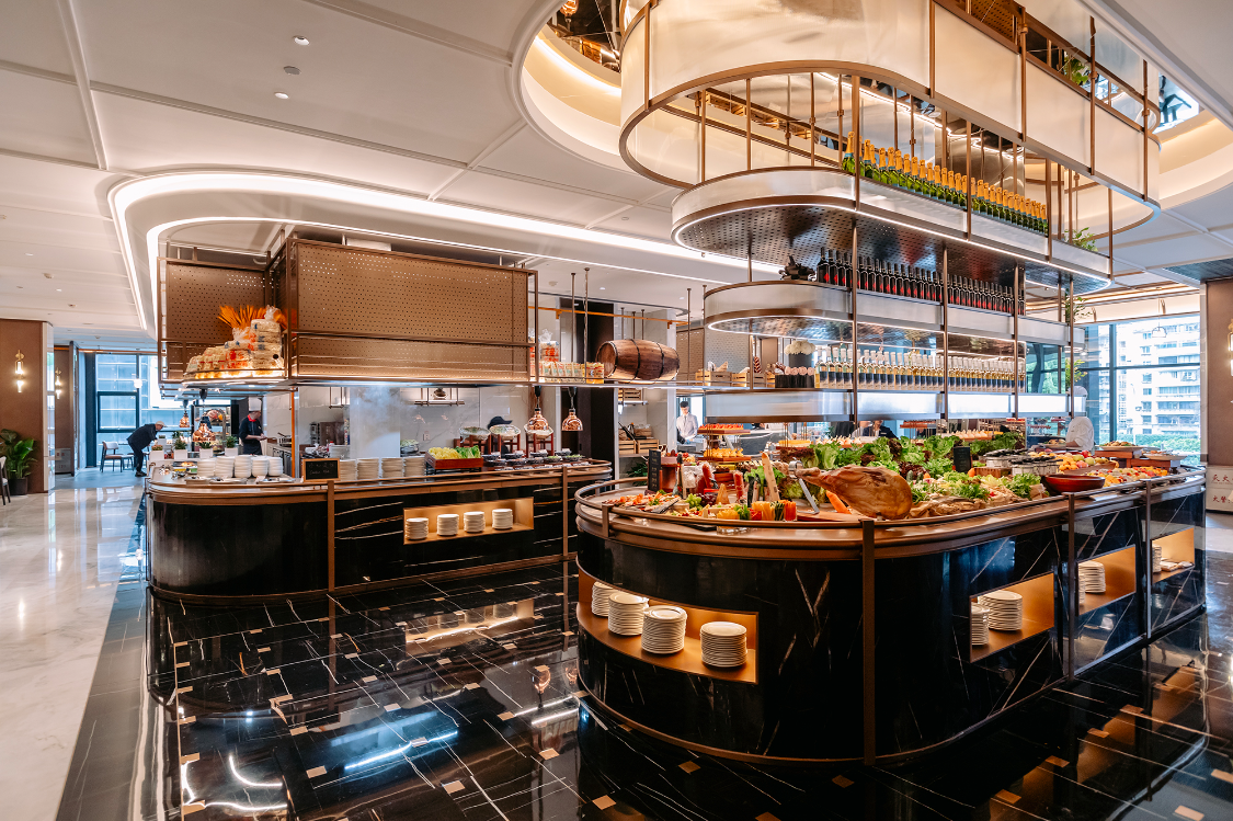 放题式自助绝非简单升级,而是一场精心设计的味觉剧本。开放式厨房化身“主厨剧场”,每日上演限定菜品Live Show:伊比利亚火腿现切、铁板烧炽宴等互动环节,宾客可无限量点选现制菜品。新增的“主厨秘匣”服务更支持“场景定制管家服务”, 可根据需求设置求婚惊喜、商务签约、生日宴等专属环节,满足个性化定制服务。