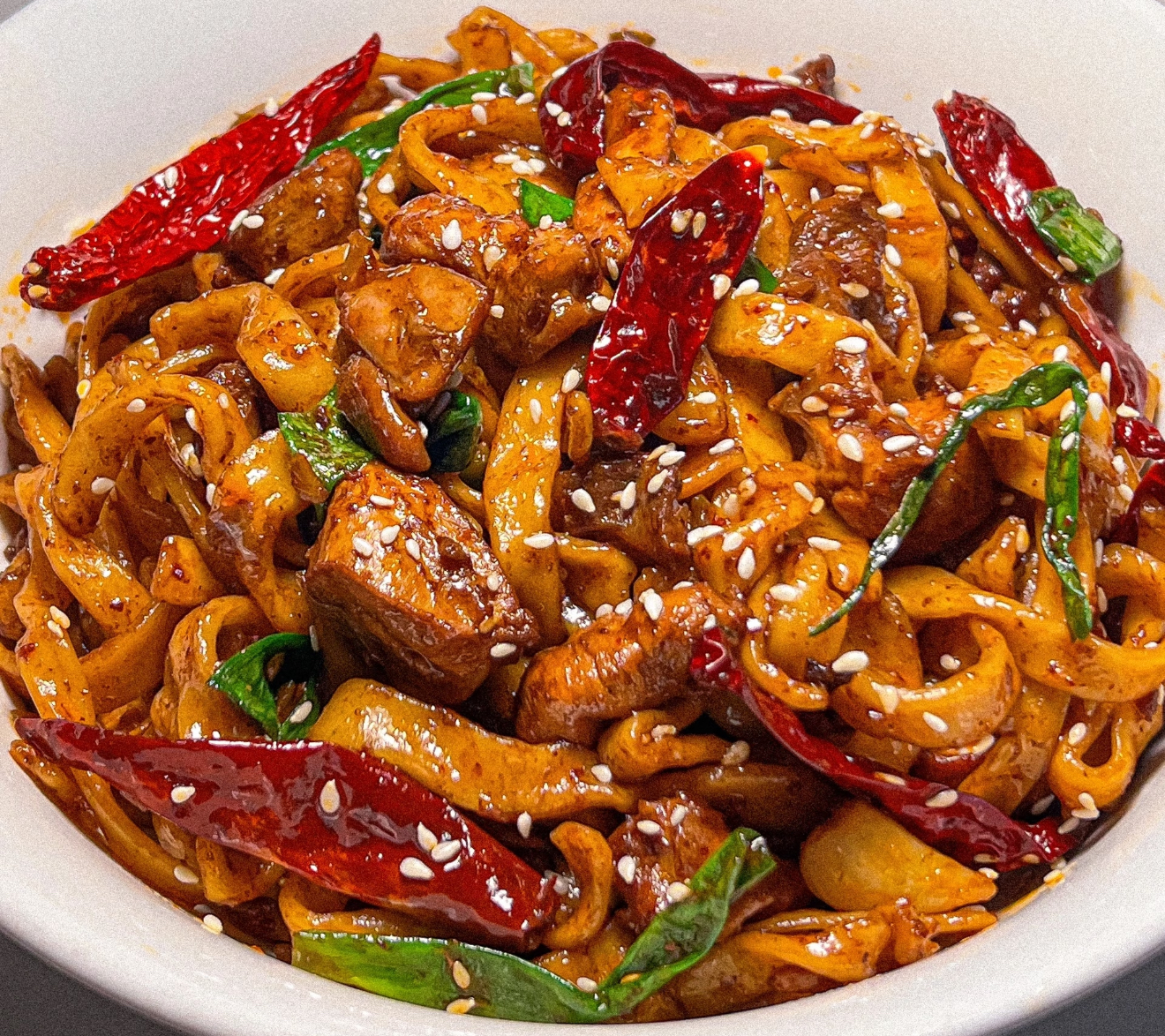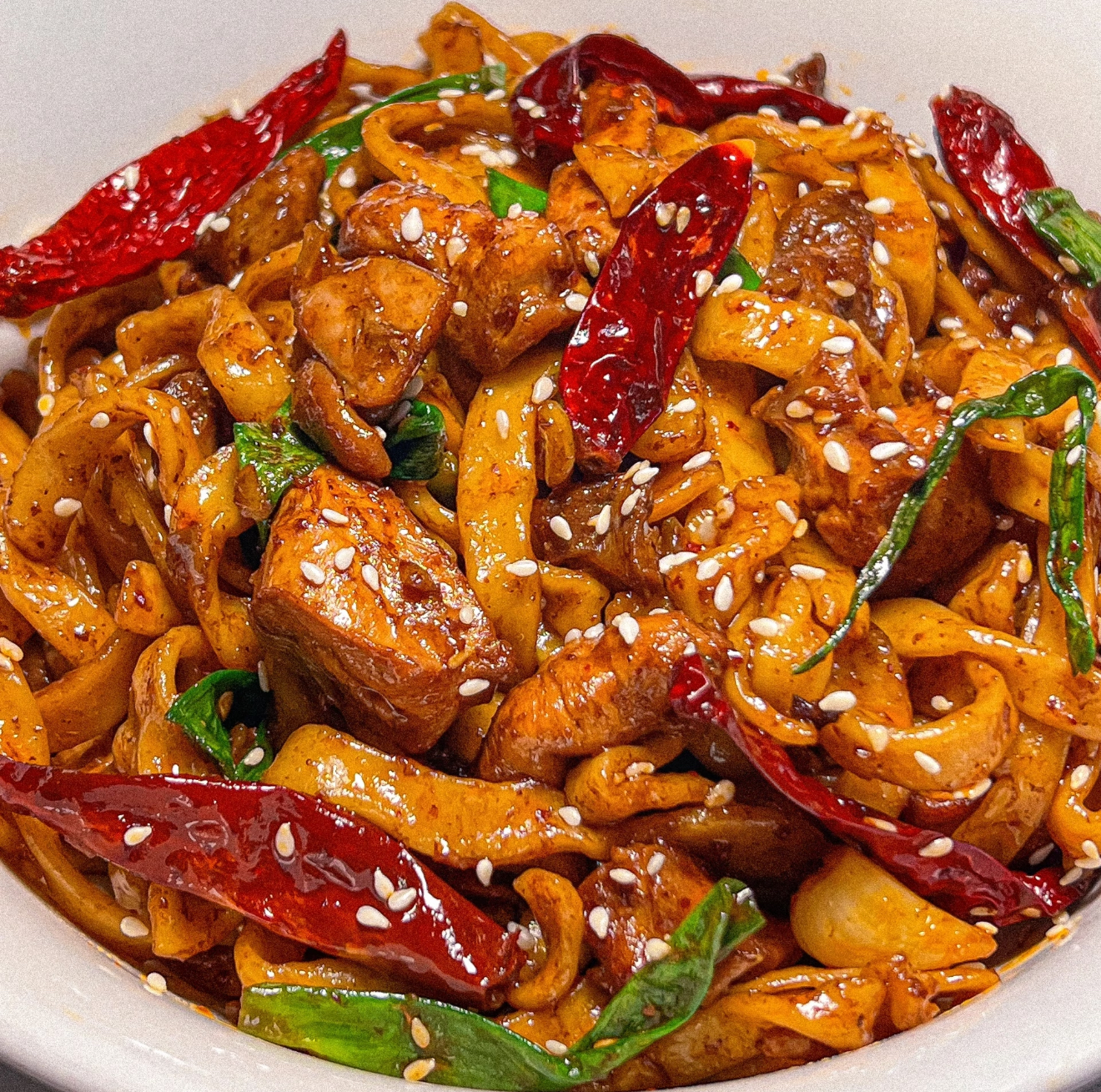 周末刷小红书,被一张辣子鸡拌面的照片勾得口水直流——红油裹着鸡块,辣椒堆成小山,面条油亮亮地卷着肉香。正想着“这得去重庆才能吃到”,闺蜜一个电话打过来:“别订机票了!我奶奶教了我个家常版,15分钟搞定,辣得过瘾!”