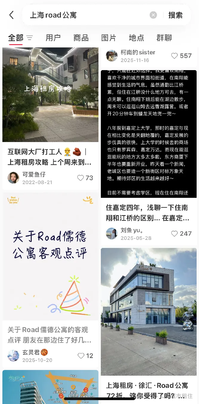 小红书月活用户已突破3.5亿,73%用户月均产生搜索行为。URI研究发现,上海租房等话题数据量惊人(上海租房攻略高达5.1亿的浏览量),平台上每天有大量年轻用户主动找房、对比房源、参考真实评价,他们并非被动受众,而是具备明确需求的租房决策者。