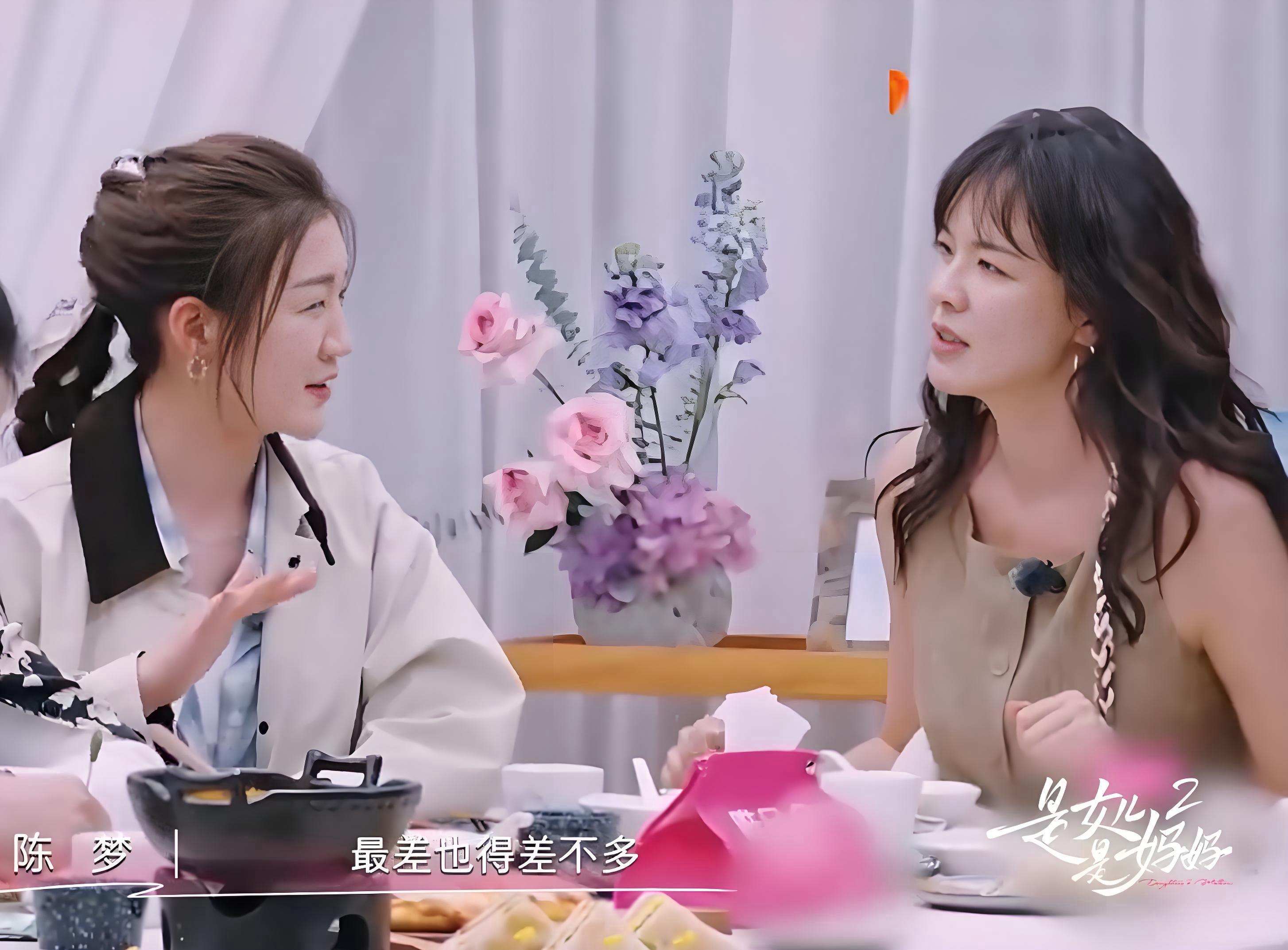 陈梦在2025年真人秀节目《是女儿是妈妈》中,公开了自己的择偶标准:我向往那种青梅竹马的爱情,未来的另一半不一定比我强,但至少两人的事业得差不多。
