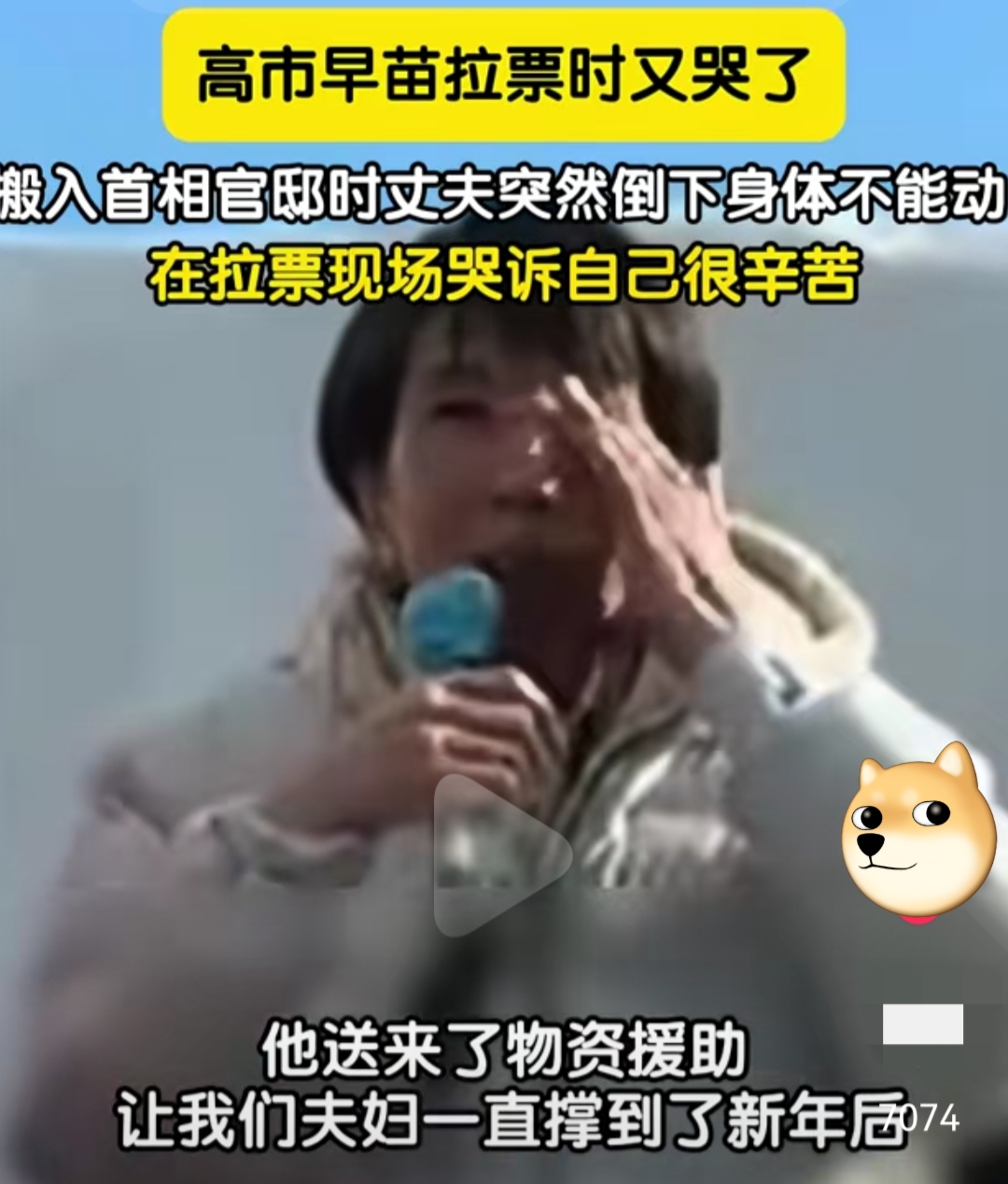 1月30日媒体信息,高市早苗在福冈县行桥市拉票演讲时再次哭泣,诉说自己在搬入首相官邸时,丈夫突然倒下,身体无法活动,称自己过得很辛苦。