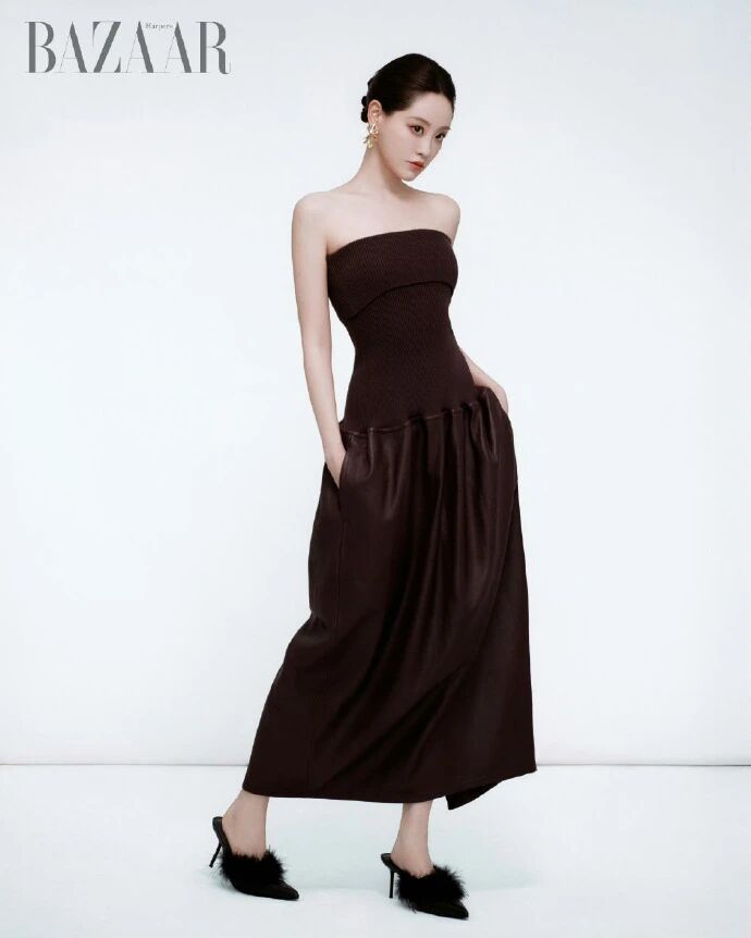 谁再说 “女艺人封面 = 单一风格的标签”?看祝绪丹这波 Harper’s Bazaar Vietnam 岁末外刊 —— 深色裹身裙的肩线刚好贴住她的肩峰锐棱,把 “冷御的刚” 裹成 “骨相里的韵”;浅纱裙的垂褶顺着腰棱柔弧走,让 “复古的柔” 衬着 “魂里的明”;连红裙的艳都卡着她的骨相张力,不是 “装风格”,是她把自己的兼容骨相,缝进了每一套裙装的针脚里,把 “双风格气韵” 从标签化割裂,拽成 “骨相、裙装与双韵共振的呼吸感”。