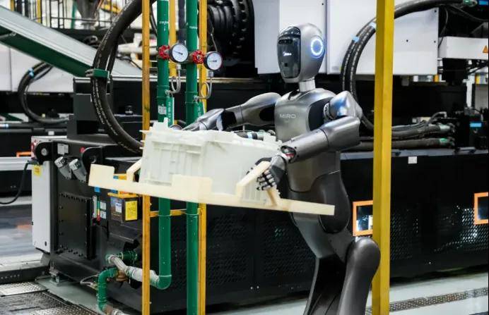 早在2025年5月,美的应用于工业场景的类人形机器人“美罗”就已进入荆州洗衣机工厂,在注塑车间等区域开展工作。经过半年多的场景验证,人形机器人积累了大量工业环境下的操作数据,为美罗 U 的研发提供了宝贵的实践经验,同时荆州工厂的实践也证明了机器人技术的价值。